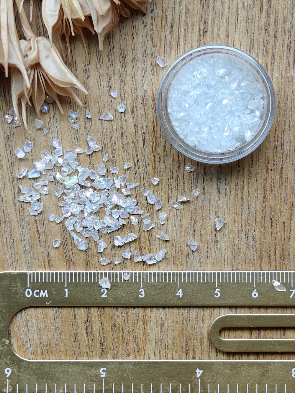 Pieniä valkoisia hippuja hartsitöihin. Tee esimerkiksi geoidi taidetta lasinalusiin tai maalauksiin!
