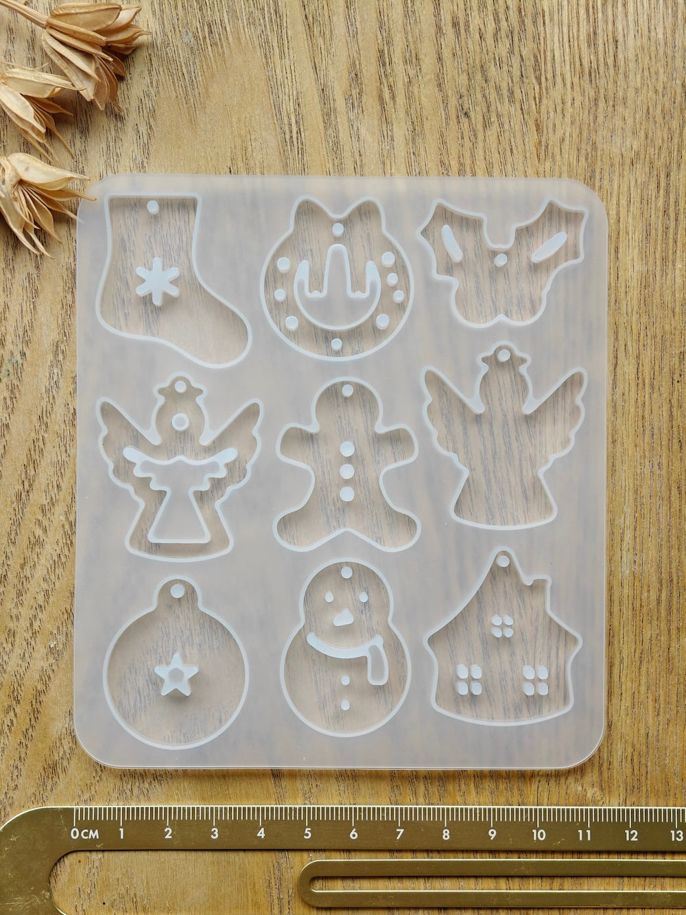 Silikonimuotti jouluisten korvakorujen, riipuksien ja pienten avaimenperien tekemiseen.