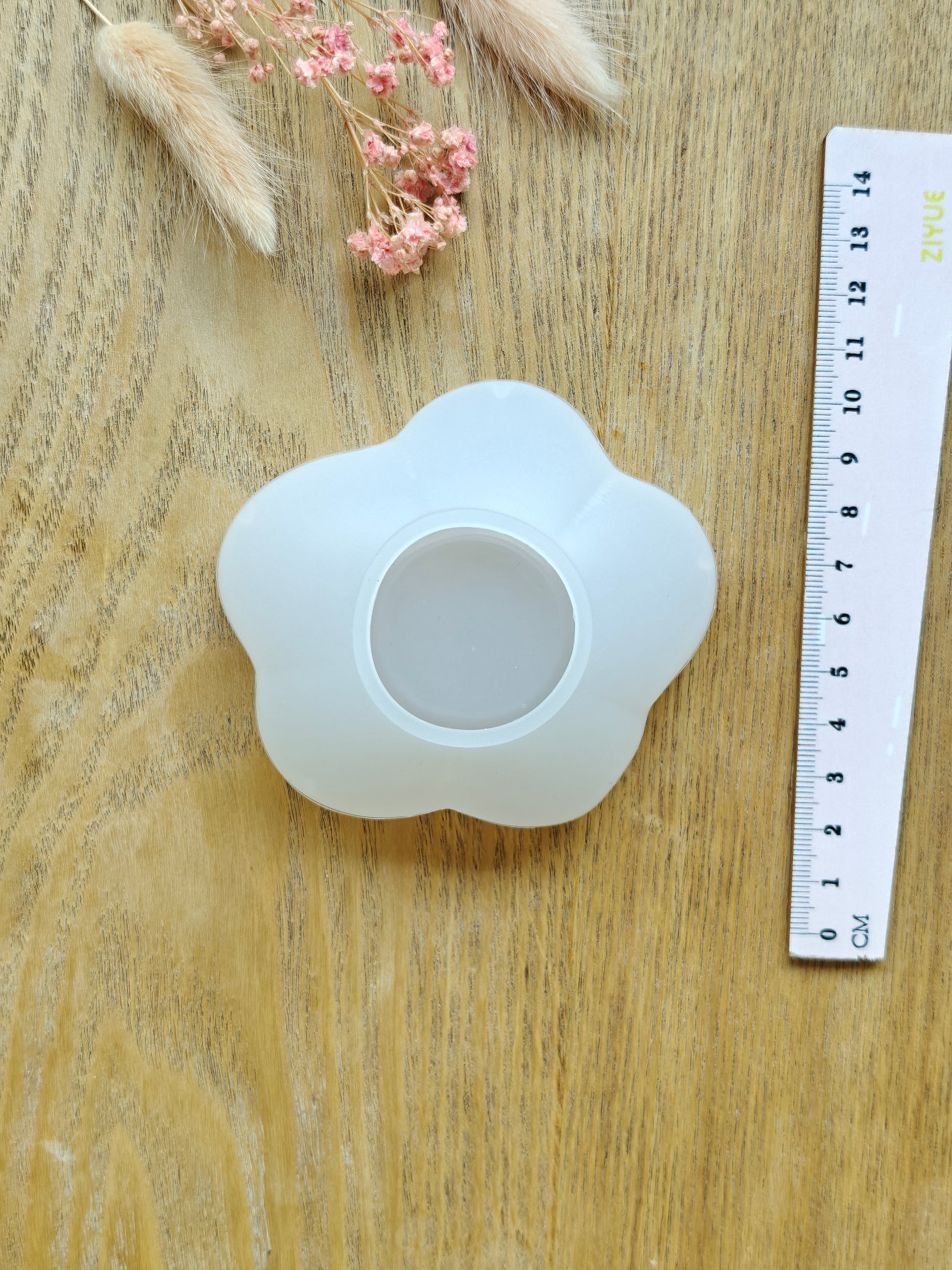 Kukanmuotoinen silikonimuotti pienen kulhon tekemiseen. Käytä kulhossa ekohartsia tai epoksihartsia.