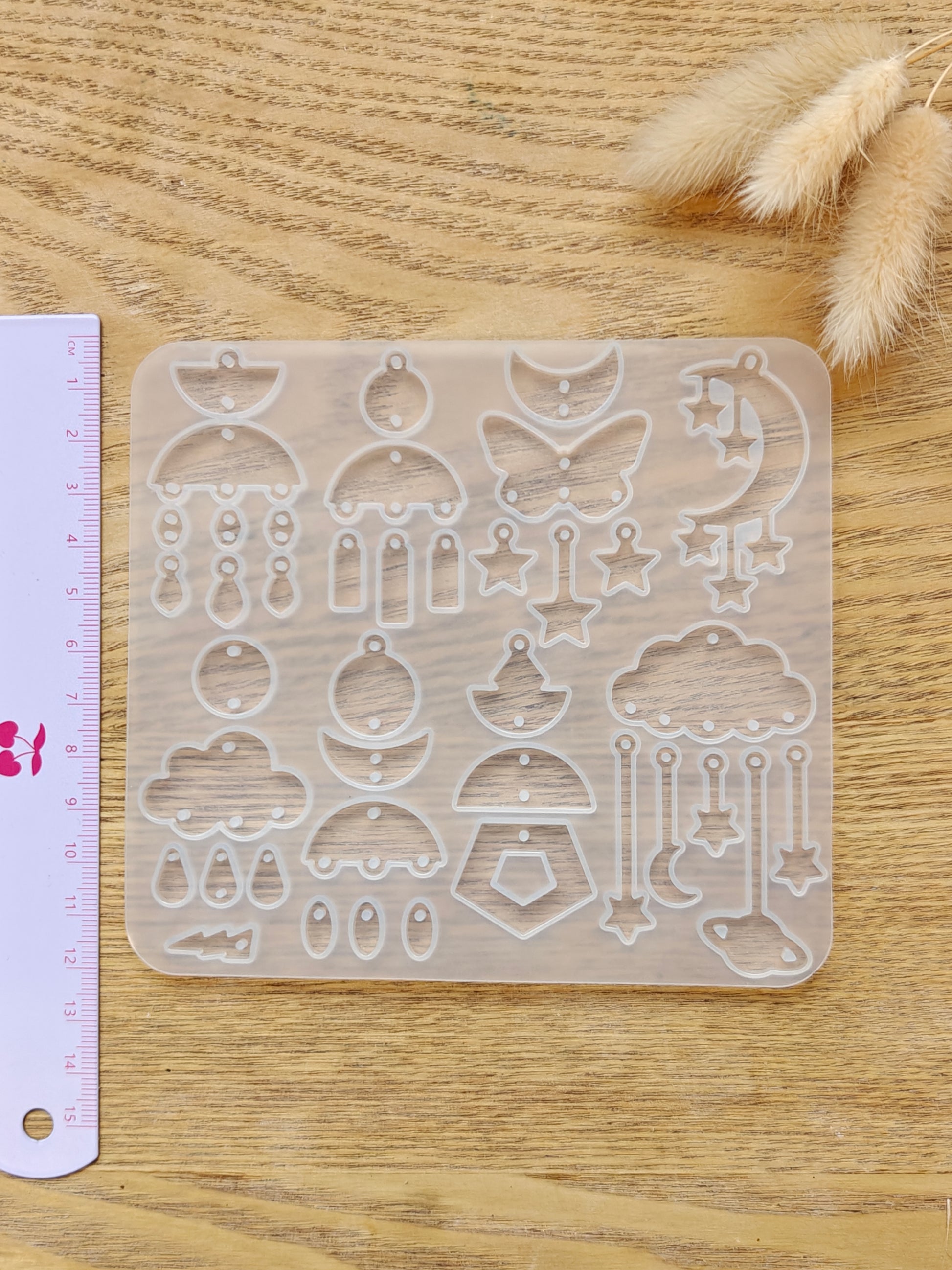 Silikonimuotti korujen riipusten ja avaimenperien tekemiseen. Käytä UV- tai epoksihartsia.