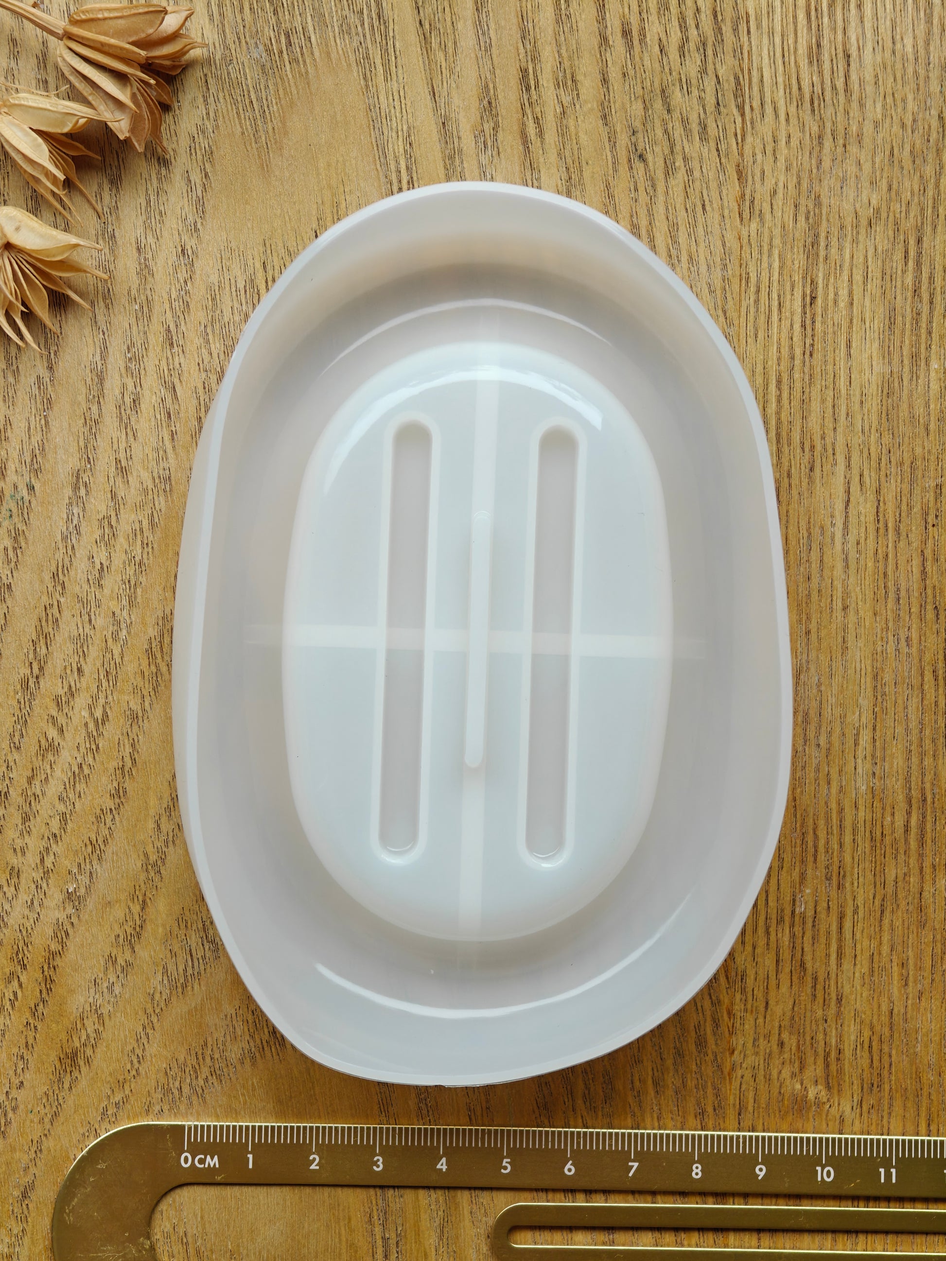 Silikonimuotti ovaalin muotoisen silikonimuotin tekemiseen. Käytä epoksihartsia tai ekohartsia.