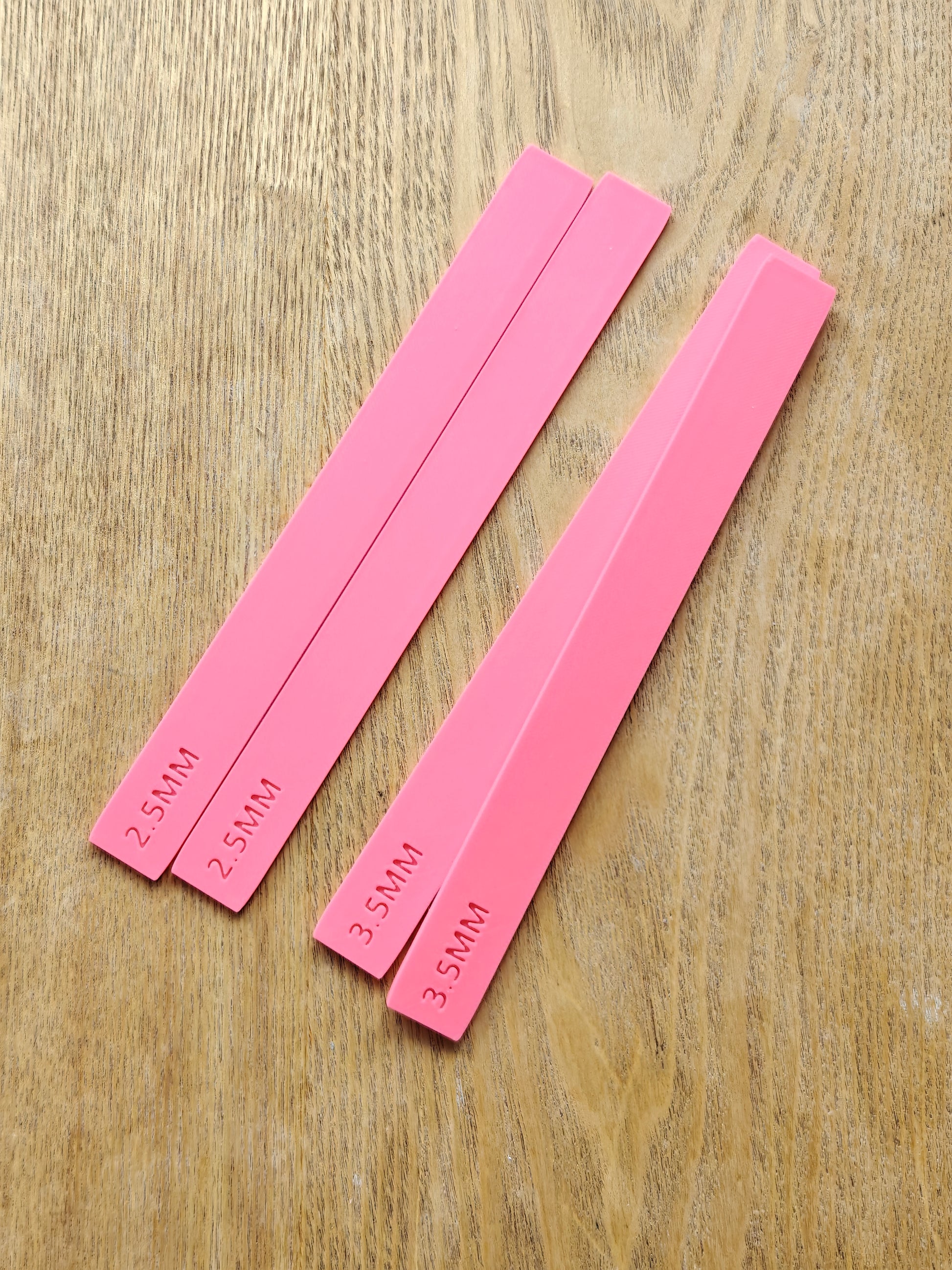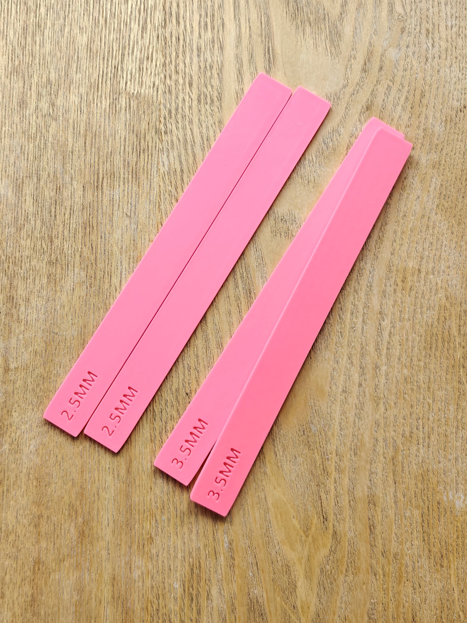 Mittojen avulla kaulit polymeerimassan tasaisen paksuksi ilman pastakonetta! Pakkauksessa 2kpl